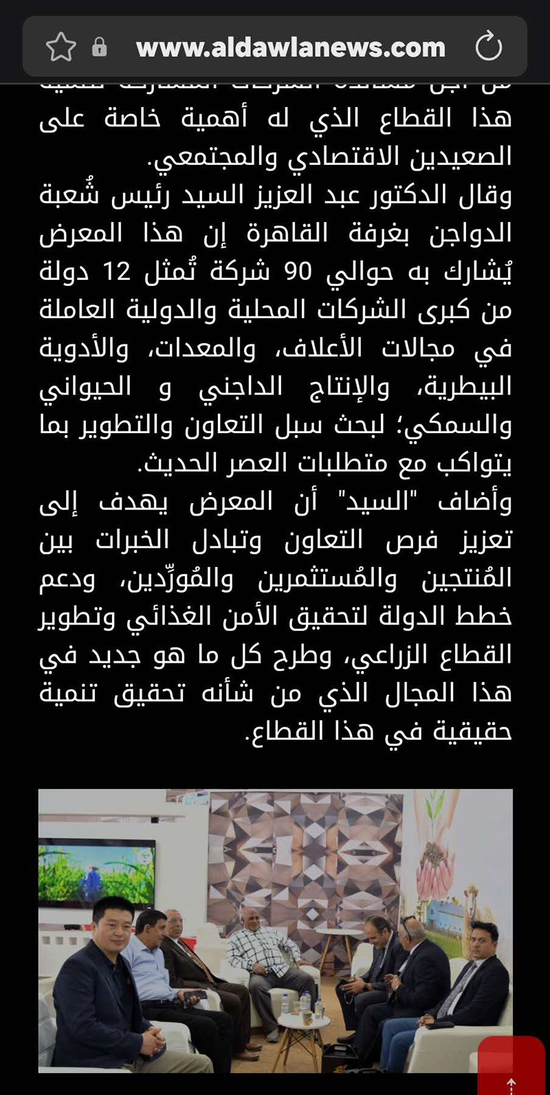 开罗商会代表参观了我司展位,并对依爱的技术实力表示认可。埃及一家重要新闻网站对展会进行了报道,并刊登了我司展位的照片,进一步提升了“依爱 EI Farming”在埃及市场的品牌影响力。