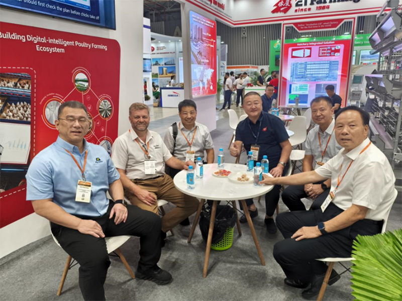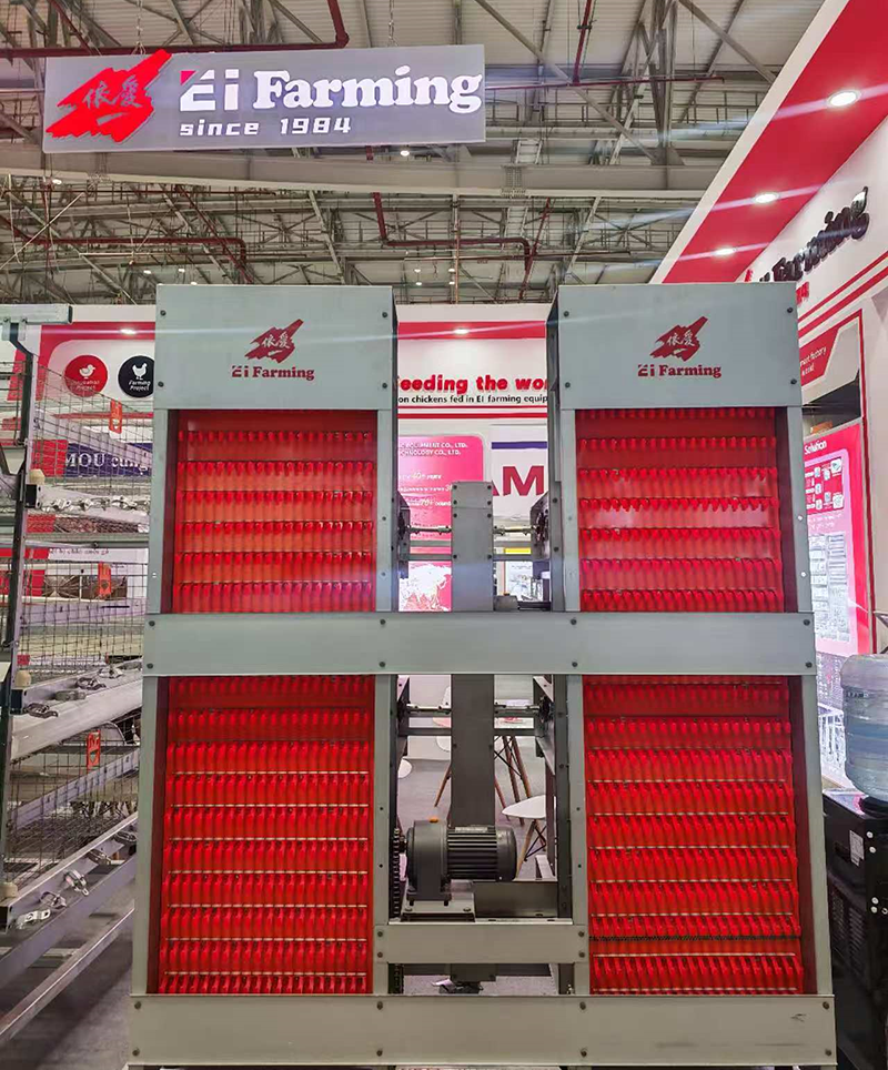 公司携自主研发的EI-CD1300H型层叠式蛋鸡笼惊艳亮相,其创新设计与卓越性能成为展位焦点。来自越南、泰国、马来西亚等地的养殖企业代表、行业专家络绎不绝,纷纷驻足咨询。该设备凭借“田字格结构+70cm层高通风系统”很好地解决了鸡只啄粪难题,“弹簧垫效应底网” 有效降低破蛋率,引发众多客商关注,而模块化设计更契合东南亚市场对集约化养殖的需求。